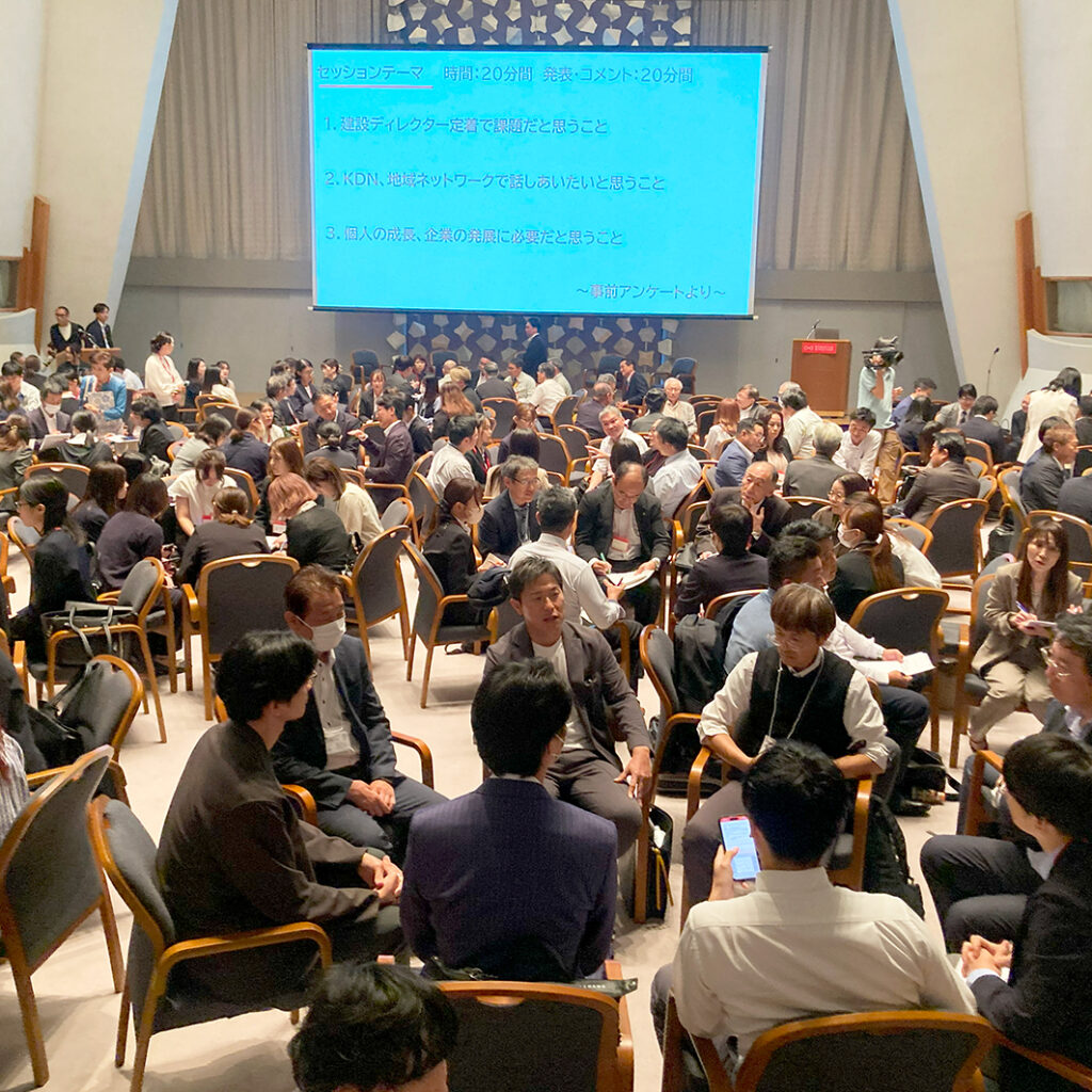 | 内容 | 全国から250名が集結、交流を実現!「KDN KYOTO 2025」開催レポート 建設ディレクターネットワークとして7回目の開催となった「KDN KYOTO 2025」。北海道から沖縄まで、全国の建設企業の経営者や建設ディレクターを中心に、約250名が京都に集まり、熱気あふれる交流の場となりました。 当協会理事長・新井恭子による講演では、「原点回帰」をテーマに、建設ディレクター誕生の背景や、2017年からスタートした事業の歩み、そして今後の展望について語りました。特に、次世代人材の育成に向けた「ジュニア建設ディレクター育成」や「地域ネットワークの構築」など、未来を見据えた構想が紹介され、参加者の関心を集めました。「地域ネットワーク」は10月8日のKDN京都をキックオフの場とし、次に北陸、北海道、関東、九州、全国へと展開を予定していると発表。KDNはこれまでの歩みを踏まえ、さらなる飛躍を目指して、地域と未来をつなぐネットワークとして進化を続けます。 組織力で未来を築く──伊米ヶ崎建設の協働型チームへの進化 伊米ヶ崎建設株式会社 代表取締役社長 櫻井馨 新潟県魚沼市に本社を構える伊米ヶ崎建設株式会社は、建設ディレクターの導入を契機に、個人依存型の現場運営から、協働型の組織体制へと大きく進化を遂げています。 櫻井馨社長は講演で、建設ディレクターを現場支援だけでなく、ICTの内製化や業務標準化を通じて、技術者とディレクターが互いに「主体」となり連携することが重要と述べました。その結果、若手人材の定着率が向上し、社員の平均年齢も大幅に若返るなど、組織全体の活性化につながっています。 また、デジタルツールを活用したタスク共有やナレッジ共有により、現場間の連携が強化され、属人的な業務から脱却。チーム施工による「全体最適」の実現を目指す姿勢は、地域建設業の未来に向けた新たなモデルとして注目を集めています。 循環するキャリアで未来を切り拓く──海老根建設株式会社の挑戦 海老根建設株式会社 代表取締役 柳瀬香織 高齢化と就労人口の減少が進む地方都市において、公共工事を中心に地域インフラを支えるとともに、持続可能な働き方改革と人材育成に取り組んでいます。 しかし、施工管理技士の採用には苦戦が続いており、社員の年齢構成は50代以上が中心。ICT技術の導入による業務の変化が高齢社員の負担となり、モチベーション低下や退職希望が課題となっています。こうした状況を打開するため、同社は「建設ディレクター課」を新設。施工管理技士の業務を分担・補完する新職種「建設ディレクター」を導入し、タスクシフティングによって資格不要の業務を移管することで、施工管理技士の負担軽減と長寿命化を実現しています。 建設ディレクターは、マンツーマン型で施工管理技士を補佐するスタイルと、横断型で全現場を対象に専門業務を担うスタイルの両方で運用されており、実際に施工管理技士を目指す社員も現れています。この制度は、キャリアの循環と育成を促進し、社員の働く寿命を延ばす効果をもたらしています。 最後に、同社が目指すのは、社員全員が小さな成功体験を積み重ね、互いを認め合える社内文化の形成です。高齢社員も若手社員もやりがいを持って働ける環境づくりが、企業の持続性と地域貢献につながると考えています。ワークエンゲージメントの高まりが、企業風土を変え、企業寿命を延ばす力になる、というのが海老根建設株式会社の挑戦です。 組織を紡ぐ存在へ──石岡理事が語る建設ディレクターの新たなフェーズ 一般社団法人建設ディレクター協会 理事 石岡秀貴 石岡秀貴氏は、「建設ディレクターの新しいフェーズへ」と題し、組織変革の可能性について講演を行いました。 石岡氏は、建設ディレクターの導入意義は生産性向上にあるとし、その生産性向上の鍵は現場代理人のコアスキルにあり、そのスキルを高めるには「適正・経験・環境」の3要素が重要であると指摘。また、高めたスキルを最大限に生かすには、全工程の中でも特に初期段階において、建設ディレクターによる集中的な支援を受けることで、現場管理において最も重要な「計画」に集中して取り組める環境を整えることが効果的であると説きました。特に、建設ディレクターが組織全体を横断的につなぐ“横串”の役割を担うことで、属人的な現場運営からチームとしての協働文化へと進化することが可能になる、チームとしての活躍を評価することで自分事として捉えることができるのではと語りました。建設ディレクターの存在が企業文化のアップデートにつながり、「人が集まる組織」へと変化することで、企業価値そのものが高まると強調。これからの建設業は、協力・支援し合える組織文化を持つ企業こそが成長し、持続可能な未来を築いていくと締めくくりました。 経営者三名からの建設ディレクター実践報告は、いずれも効果が出るには一足飛びでは難しい、互いに理解を得るため