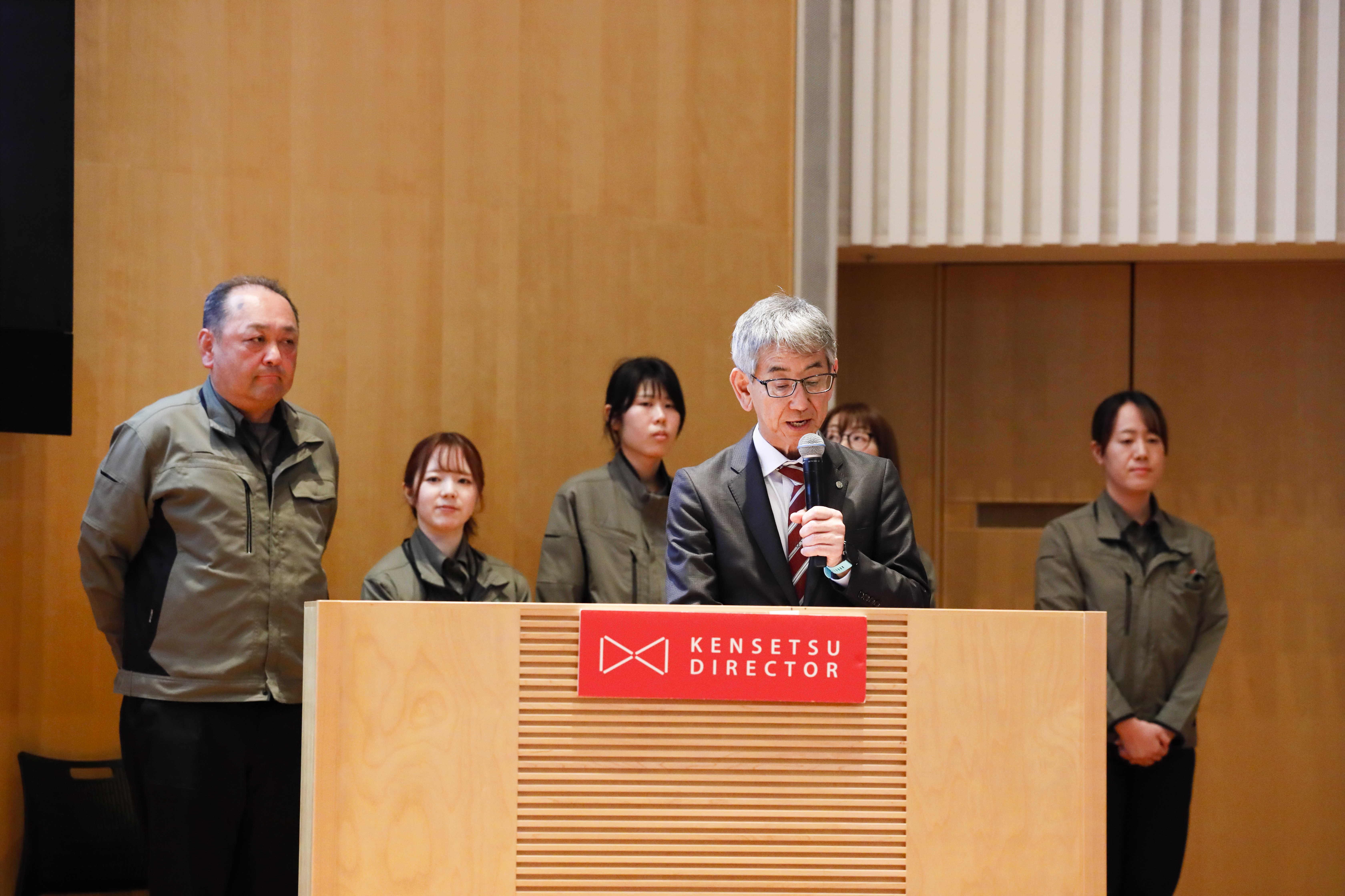 冒頭では、当協会理事長の新井恭子より、建設ディレクターが技術者の業務を支援し、知識や情報を可視化することで現場の業務効率化を図り、ひいては企業全体の生産性向上や経営の強化につながる旨を説明。続いて、国土交通省 技監 廣瀬昌由氏よりビデオメッセージを頂戴した。続いて、国土交通省 北陸地方整備局 企画部長 加藤智博氏よりご挨拶を賜り、新潟県土木部 部長 清田仁氏はご欠席のため、代理として監理課建設業室長 大越勝文氏よりご挨拶を頂戴した。