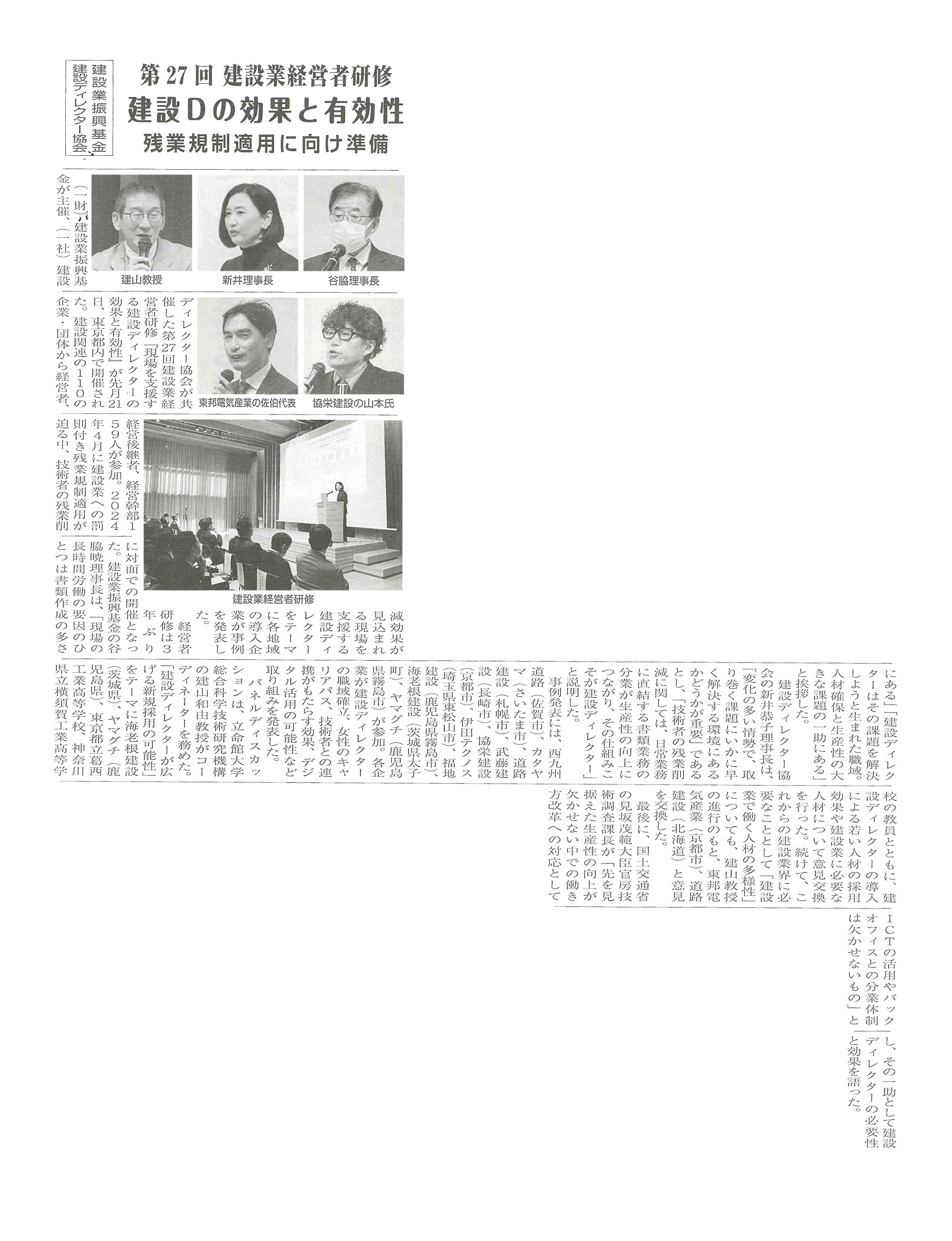 HOME / 協会からのお知らせ / 第27回建設業経営者研修が「建設タイムズ」に掲載されました
