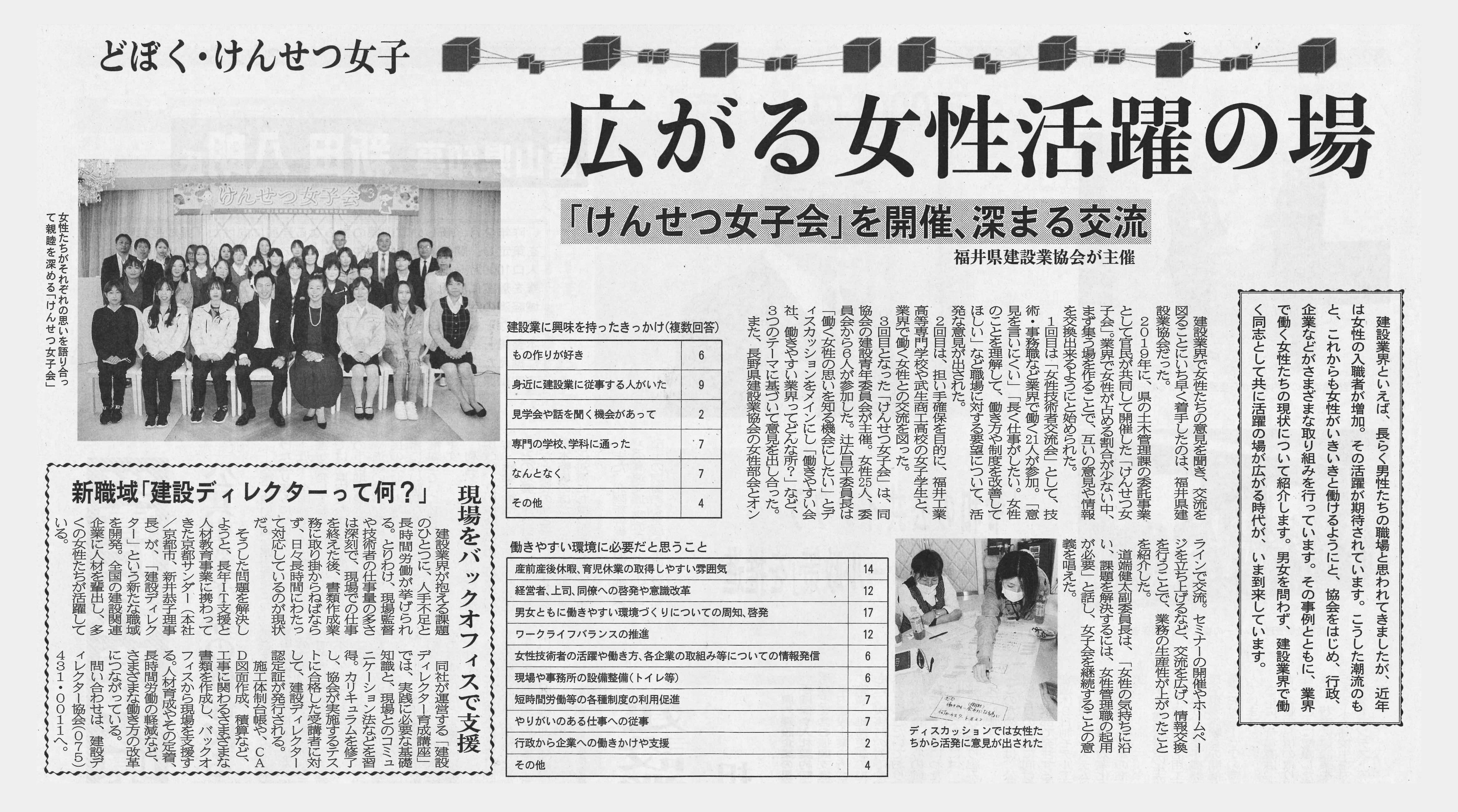 HOME / 協会からのお知らせ / 広がる女性活躍の場『新職域「建設ディレクター」って何?』が「建設工業新聞」に掲載されました