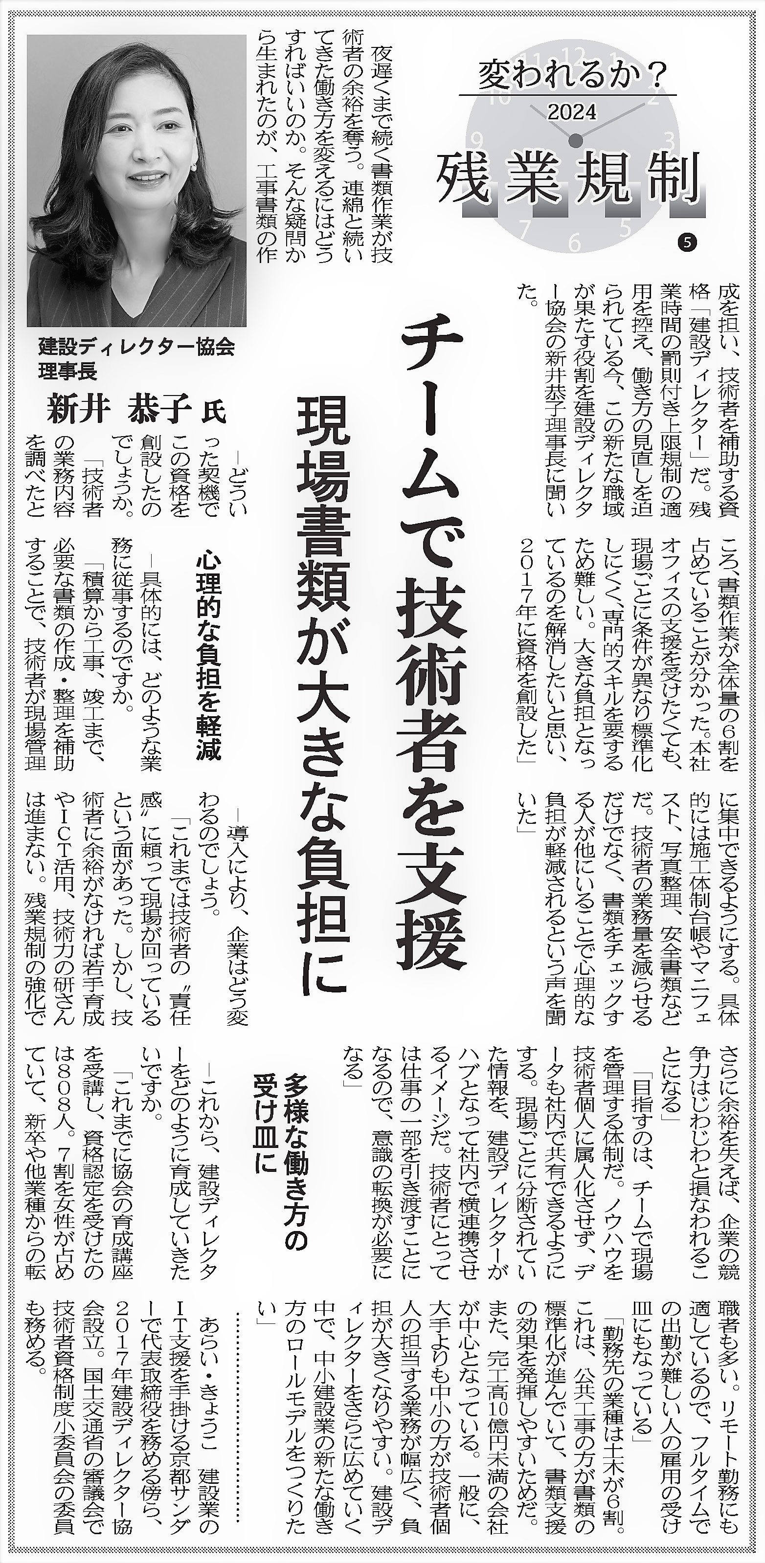 2024残業規制シリーズ「チームで技術者を支援」として建通新聞に掲載