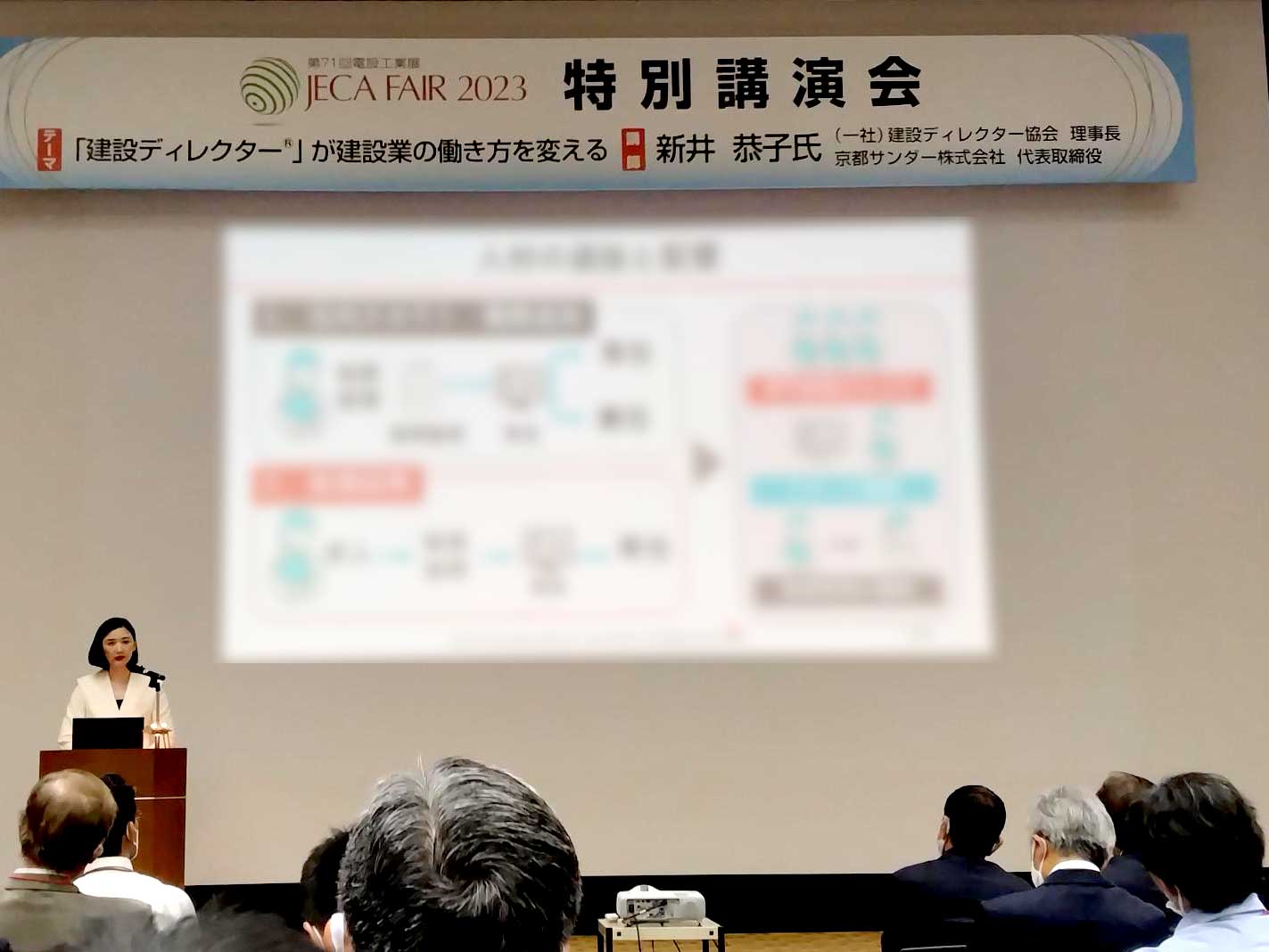 2023年5月24日インテックス大阪「第71回電設工業展 JECA FAIR 2023」特別講演会にて当協会理事長、新井恭子が講演させていただきました。