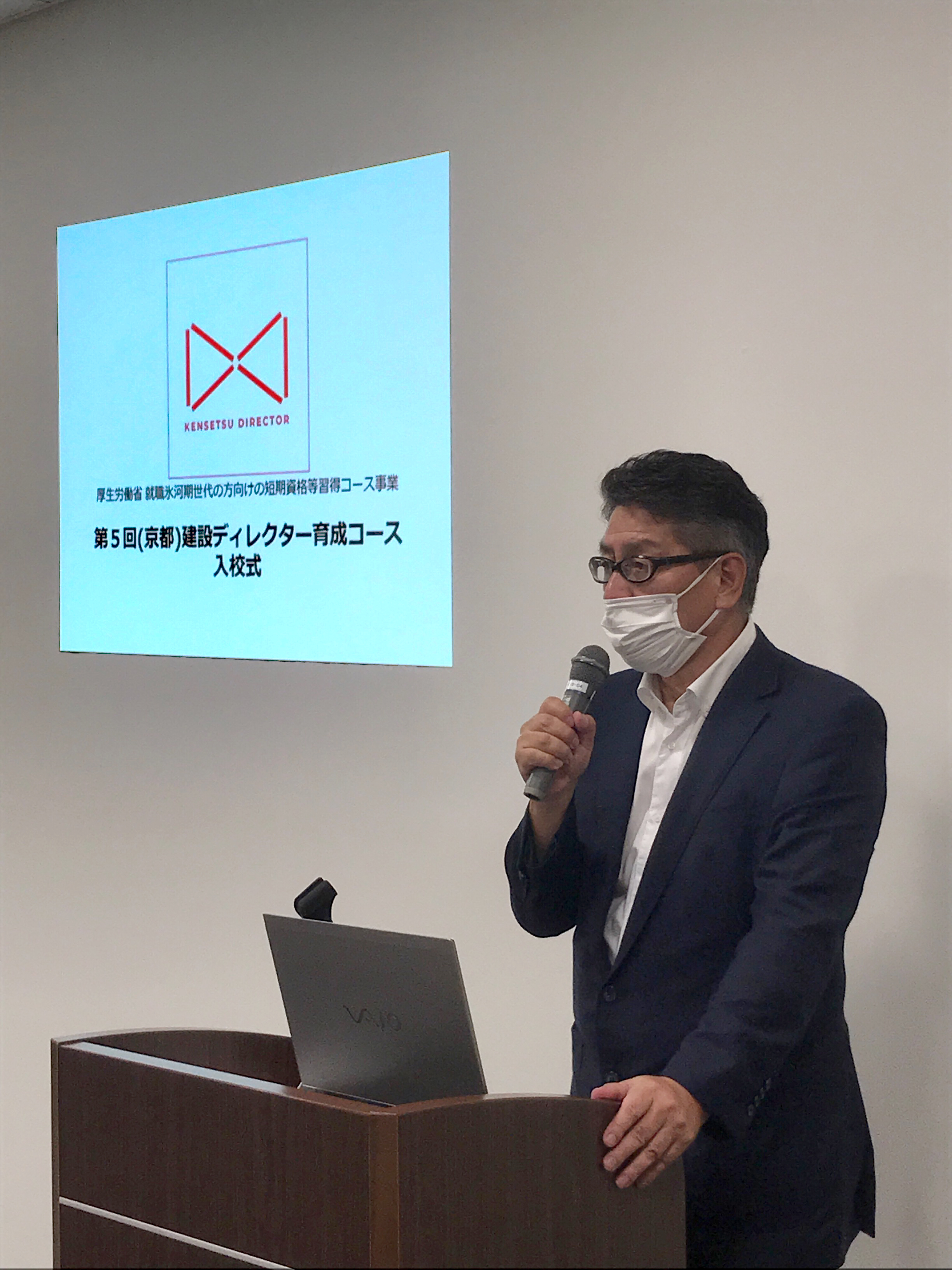 ご挨拶には、建設業振興基金の理事、奥地正敏氏がお越しになりました。