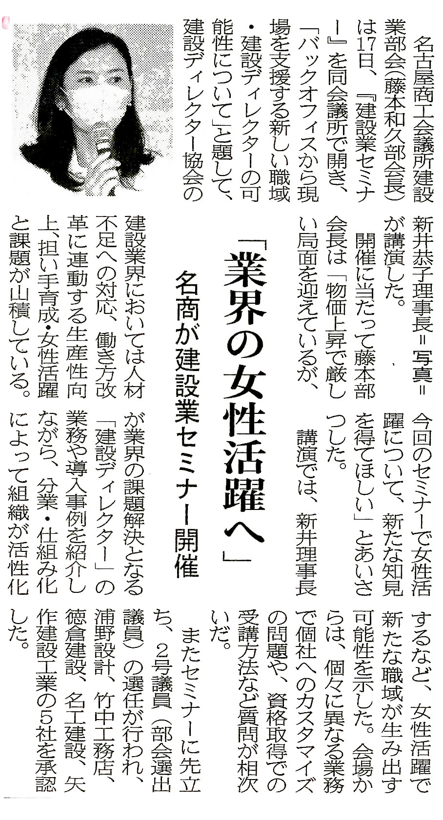 名古屋商工会議所建設業部会主催の「建設業セミナー」の様子を建通新聞に掲載いただきました。