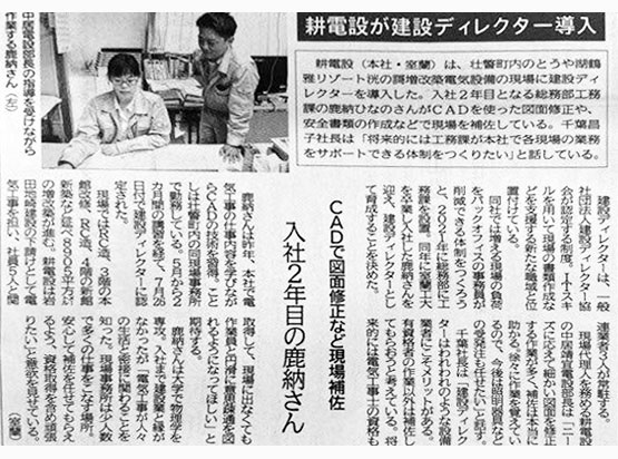 北海道建設新聞に耕電設様で導入されている建設ディレクターについて、