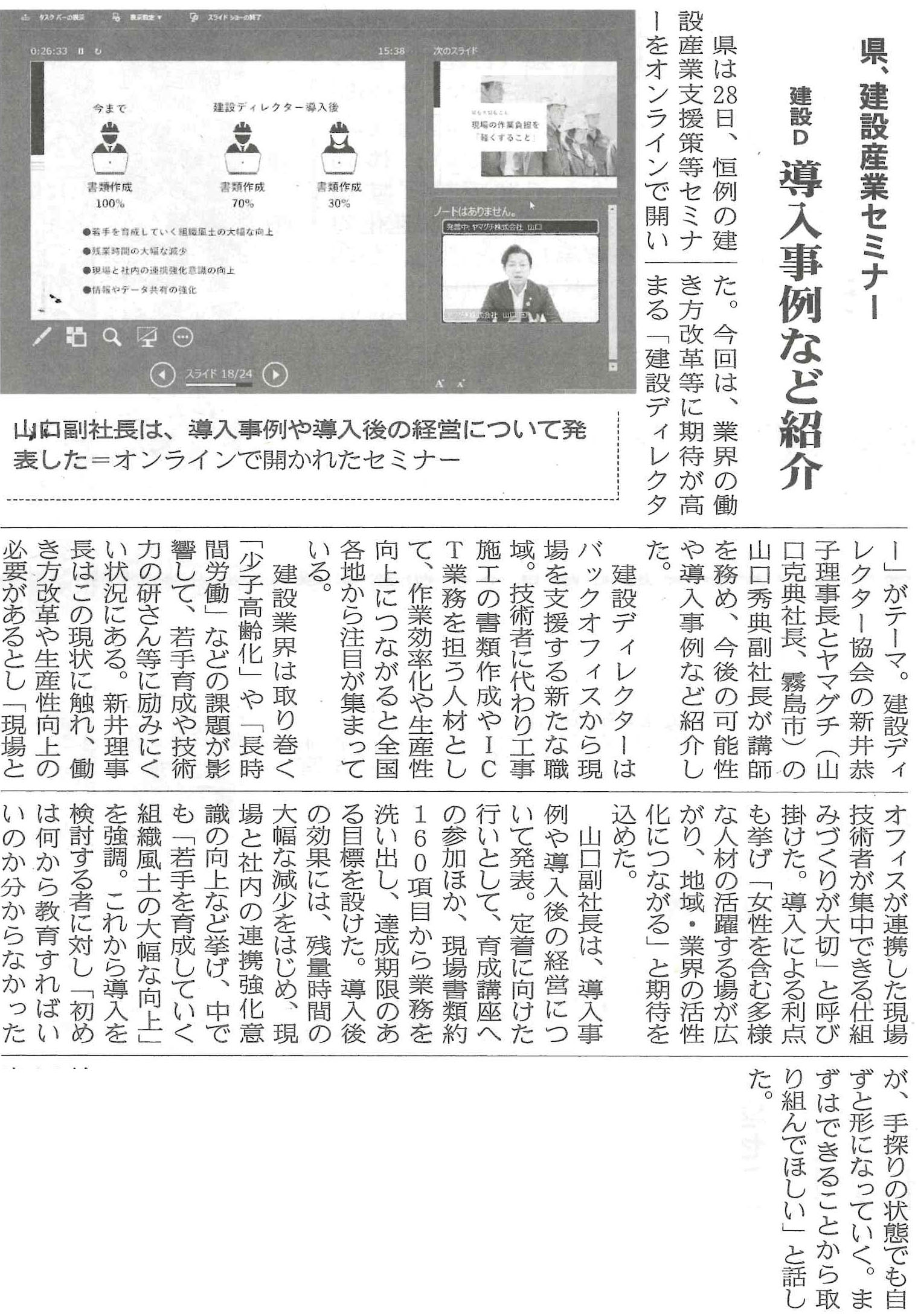 HOME / 協会からのお知らせ / 鹿児島建設新聞に建設ディレクターの導入企業が紹介されました